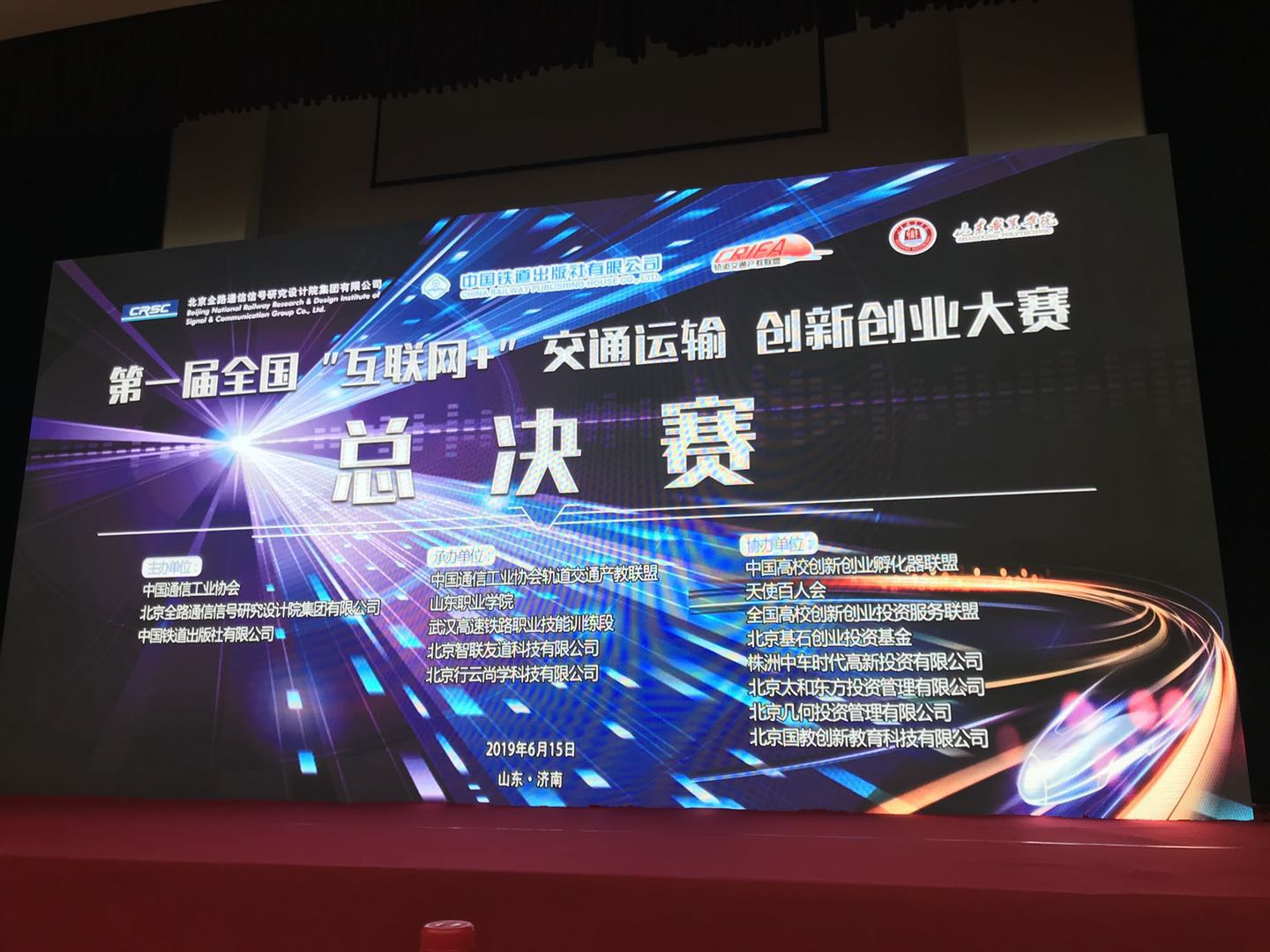 6月14日-16日,由中国通信工业协会、北京全路通信信号研究设计院集团有限公司、中国铁道出版社有限公司主办;中国高校创新创业孵化器联盟、中国高校创新创业投资服务联盟、北京几何投资管理有限公司等协办;中国通信工业协会轨道交通产教联盟、山东职业学院等承办的第一届全国“互联网+”交通运输创新创业大赛决赛在山东职业学院举行。几何投资王能林受邀担任评委,针对决赛项目进行提问点评。